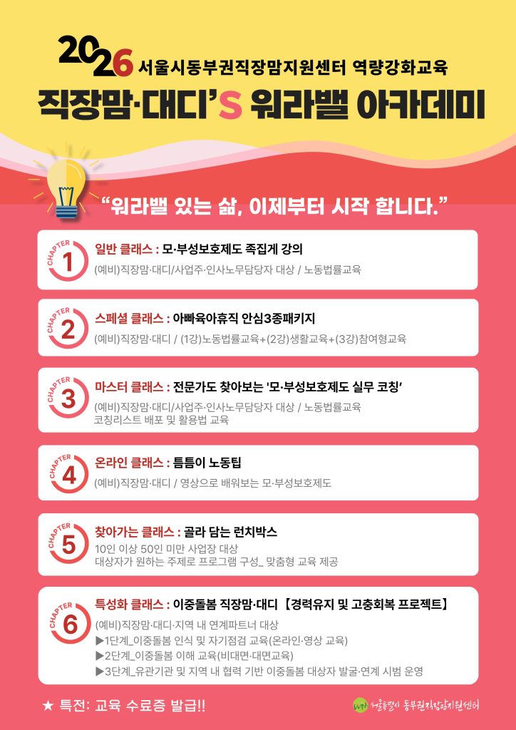 [교육 안내] 2026년 「직장맘·대디’s 워라밸 아카데미」가 시작됩니다.