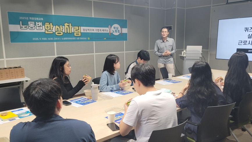 ‘점심시간에 노동법 한 입!’ 지난 9월 9일(화), 서울시동부권직장맘지원센터(센터장 김지희, 이하 ‘센터’)는 성동구청 일자리정책과와 함께 성동소셜벤처허브센터 입