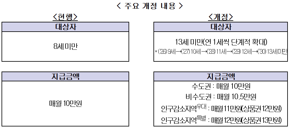 ✅ 아동수당 지급 대상 8세 미만 아동에서 13세 미만 아동으로 확대