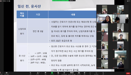 - 센터는 이처럼 노동 상담뿐 아니라 모·부성보호제도를 제공하는 모범적인 사업장을대상으로