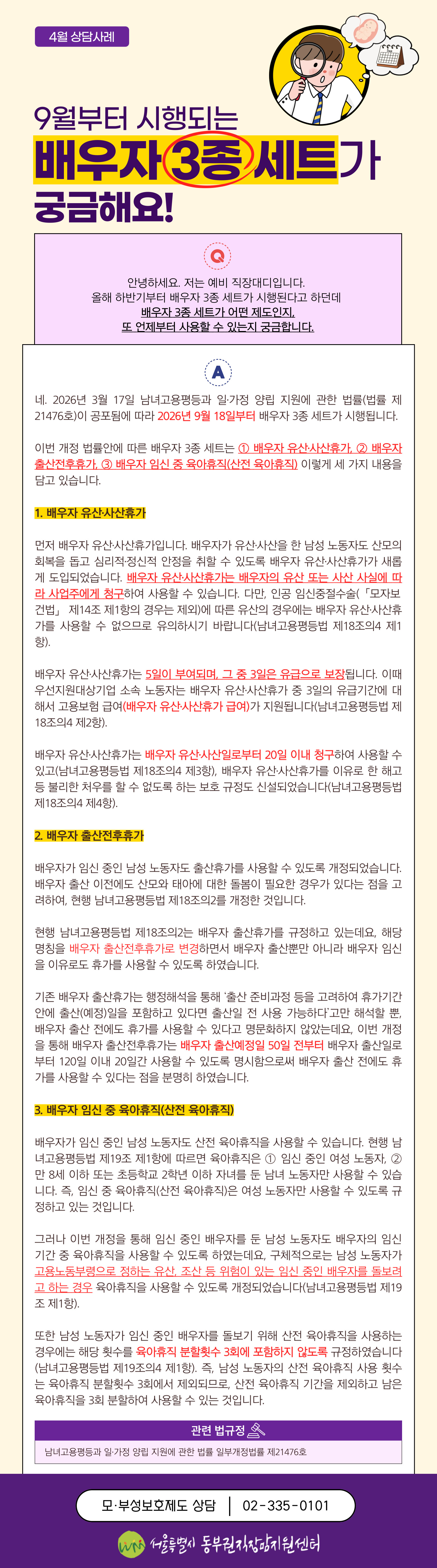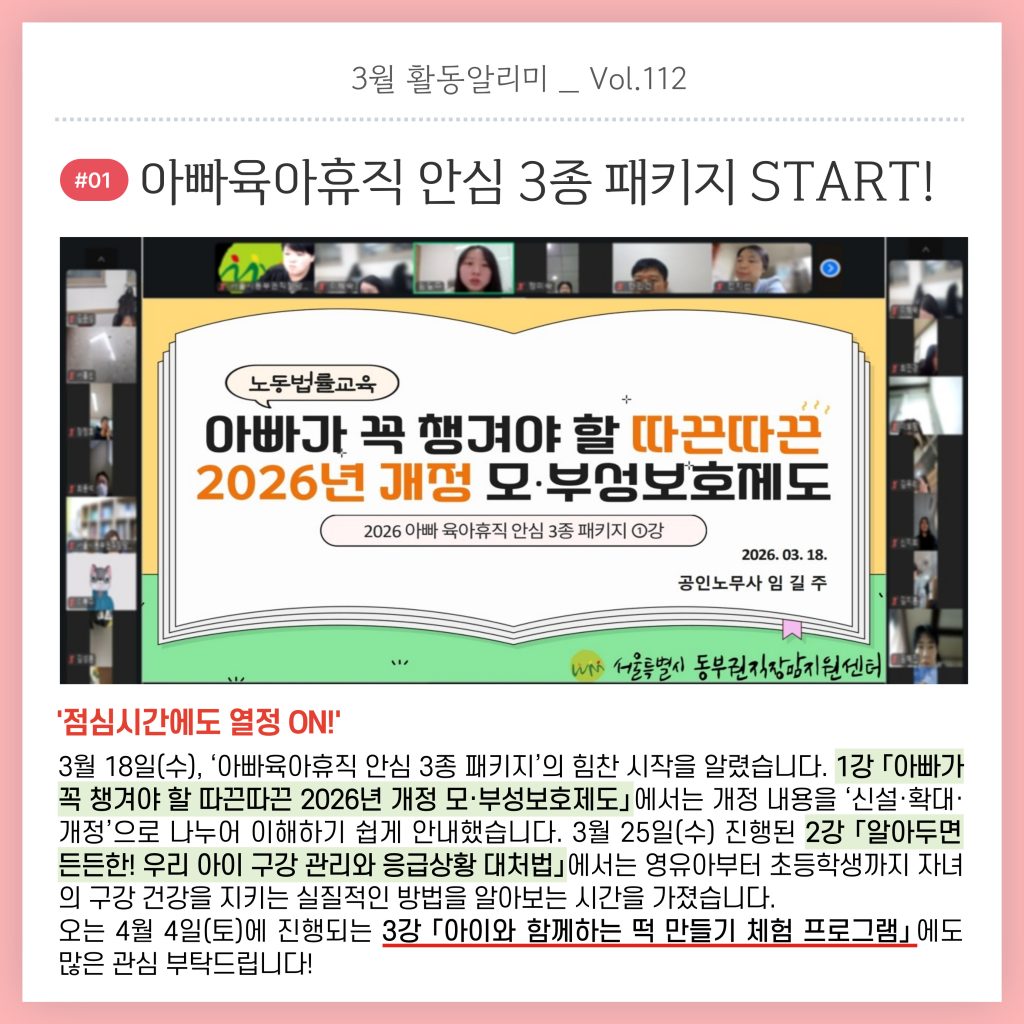 📅 3월 18일(수), 1강에서 2026년 개정 모·부성보호제도를 ‘신설·확대·개정’으로 나누어 쉽게 안내했습니다.