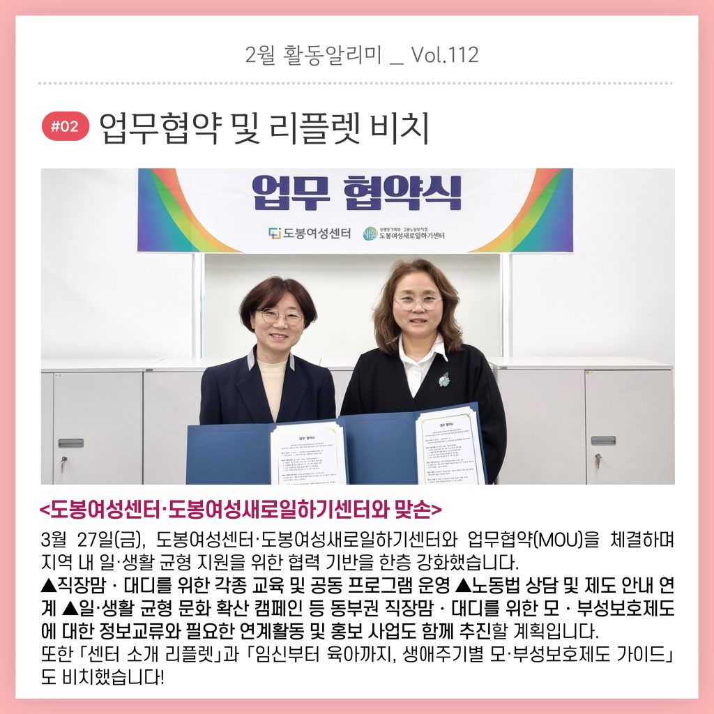 📅 3월 27일(금), 도봉여성센터·도봉여성새로일하기센터와 MOU를 체결했습니다.