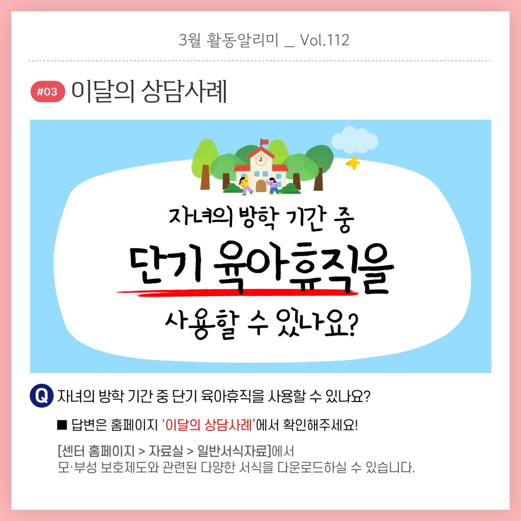 자녀의 방학 기간 중 단기 육아휴직을 사용할 수 있나요?