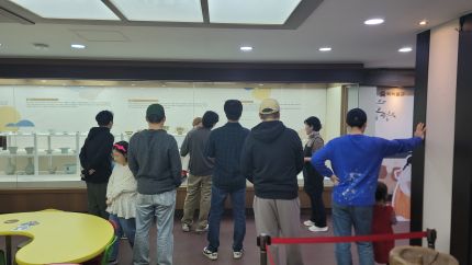 벚꽃이 흐드러지게 핀 4월 4일 토요일, 서울특별시 동부권직장맘지원센터(센터장 김지희, 이하 센터)는 아빠육아휴직 안심 3종 패키지의 마지막 시간, [놀이교육] 3강을 진행했습니다. 이번 3강은 종로에 위치한 떡박물관에서 진행된 참여형 프로그램으로, 아빠와 자녀가 한 팀이 되어 함께 웃고, 배우고, 만들어보는 특별한 시간이었는데요 모집 시작 30분 만에 마감될 정도로 뜨거운 관심 속에 최종 선정된 20팀의 아빠와 아이들이 함께해 더욱 활기차고 즐거운 분위기 속에서 프로그램이 진행되었습니다. 먼저, 전시 도슨트와 함께 우리나라 전통 떡 이야기를 알아보는 시간을 가졌습니다. 전국의 다양한 떡 종류부터 혼례, 백일·돌, 책례, 관례 등 인생의 소중한 순간마다 함께하는 떡 이야기를 들으며 아빠와 아이가 집중하는 모습이 인상적이였어요.