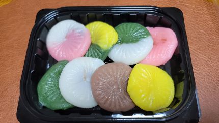 완성된 꽃산병은 마치 봄날 활짝 핀 꽃처럼 알록달록하고 예쁘게 완성되었습니다.