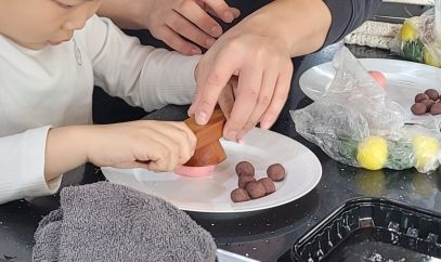 알록달록 봄꽃을 닮은 떡 반죽을 손에 쥐고 아빠와 아이가 함께 “이렇게 하면 될까?”, “여기 찍어볼까?” 웃음꽃을 피우며 정성껏 만들어 보았습니다.