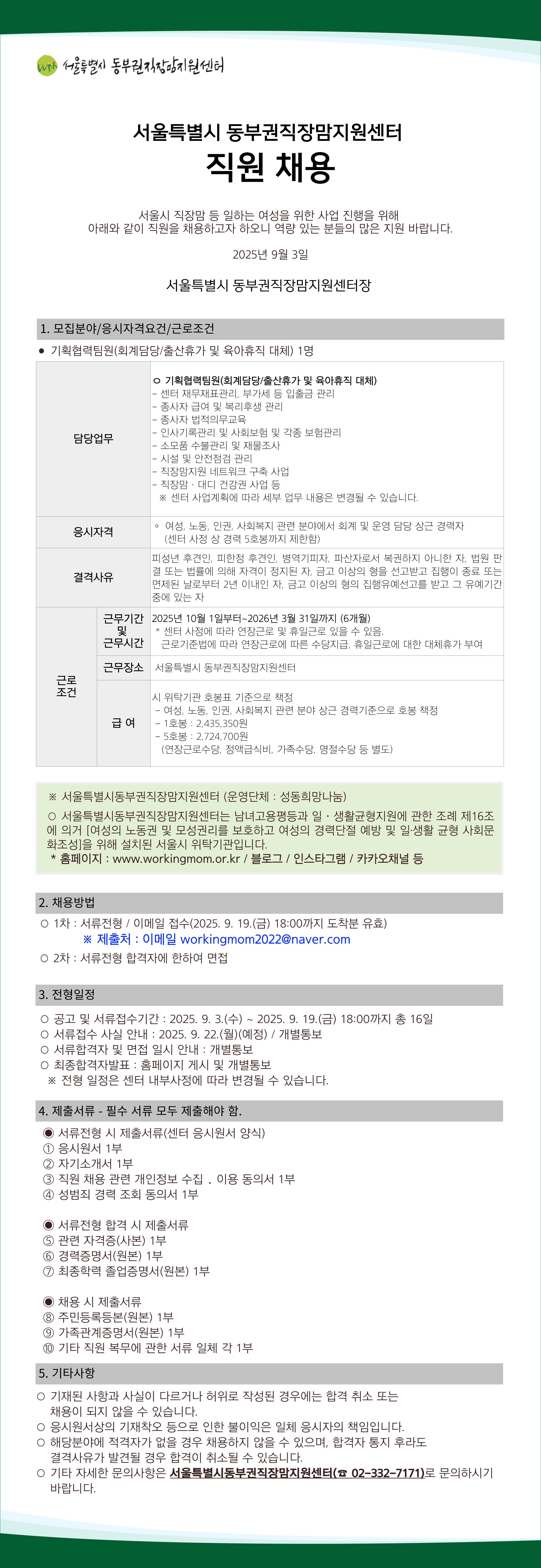1. 서울시동부권직장맘지원센터 공식 유튜브 채널 <직장맘길잡eTV> 바로가기(클릭)