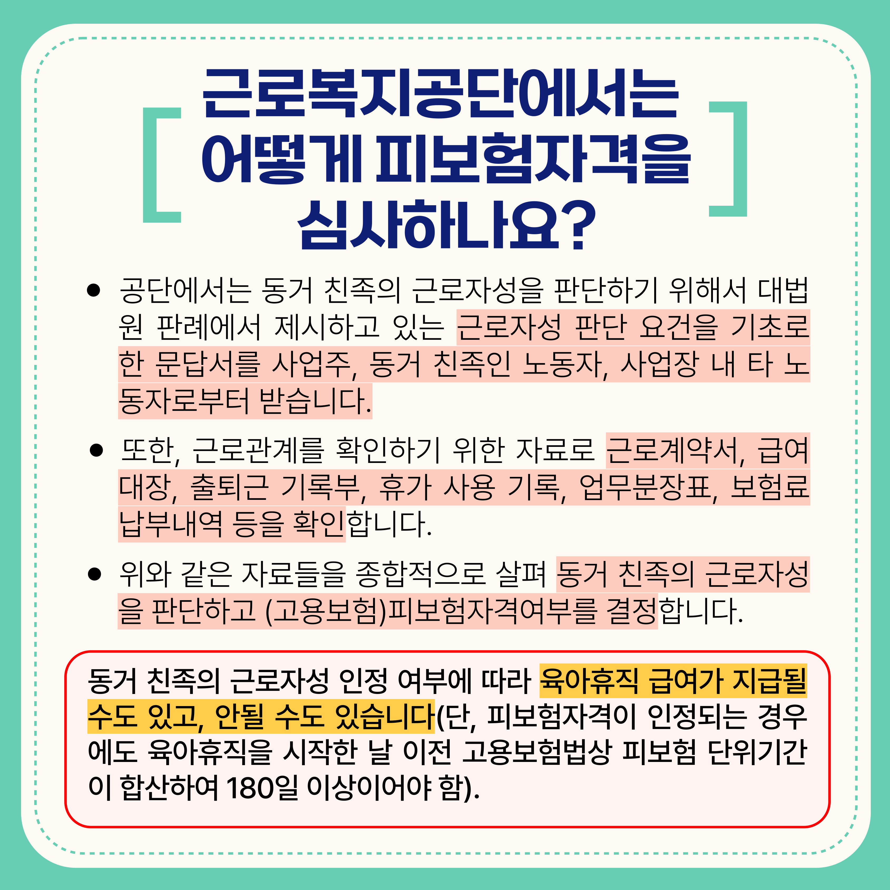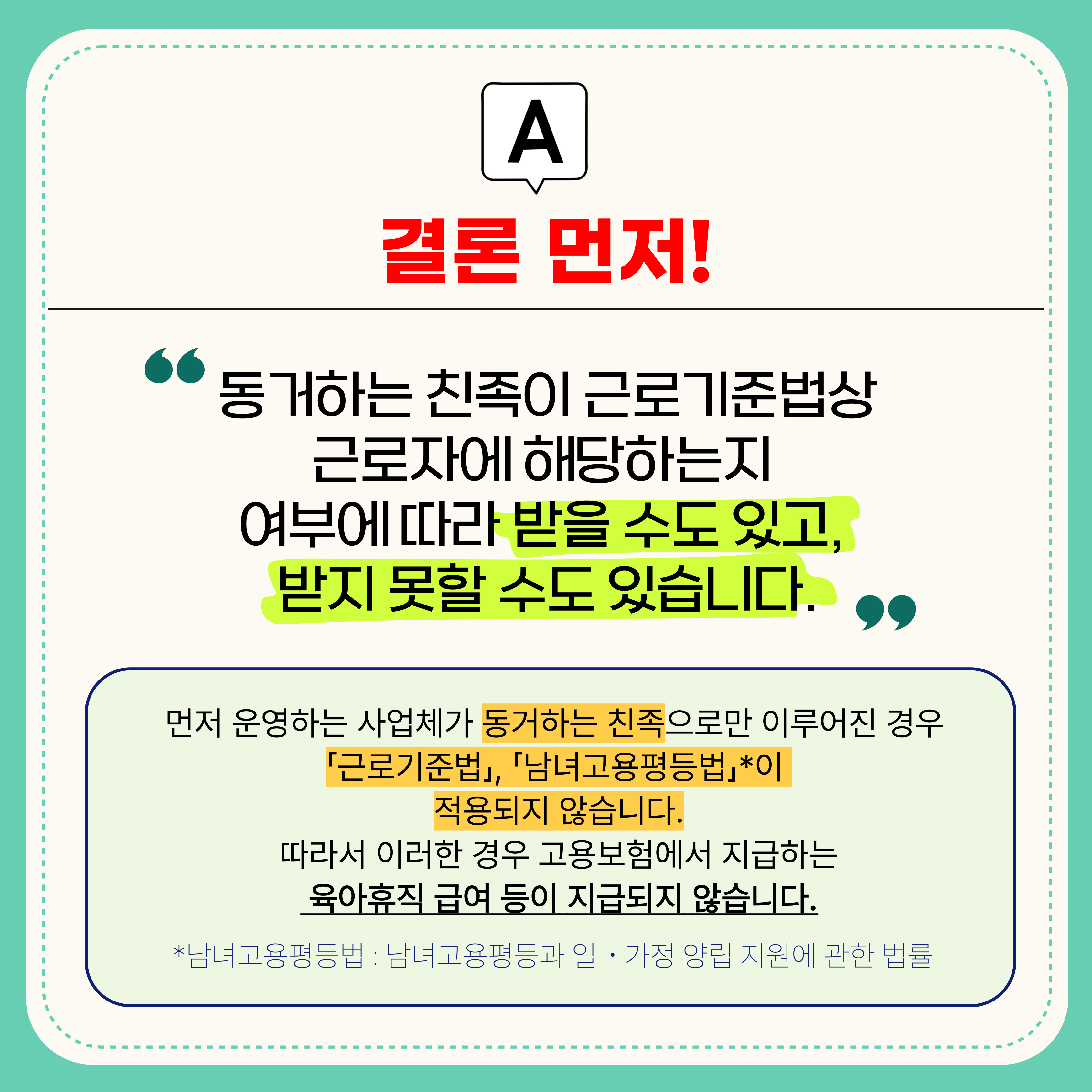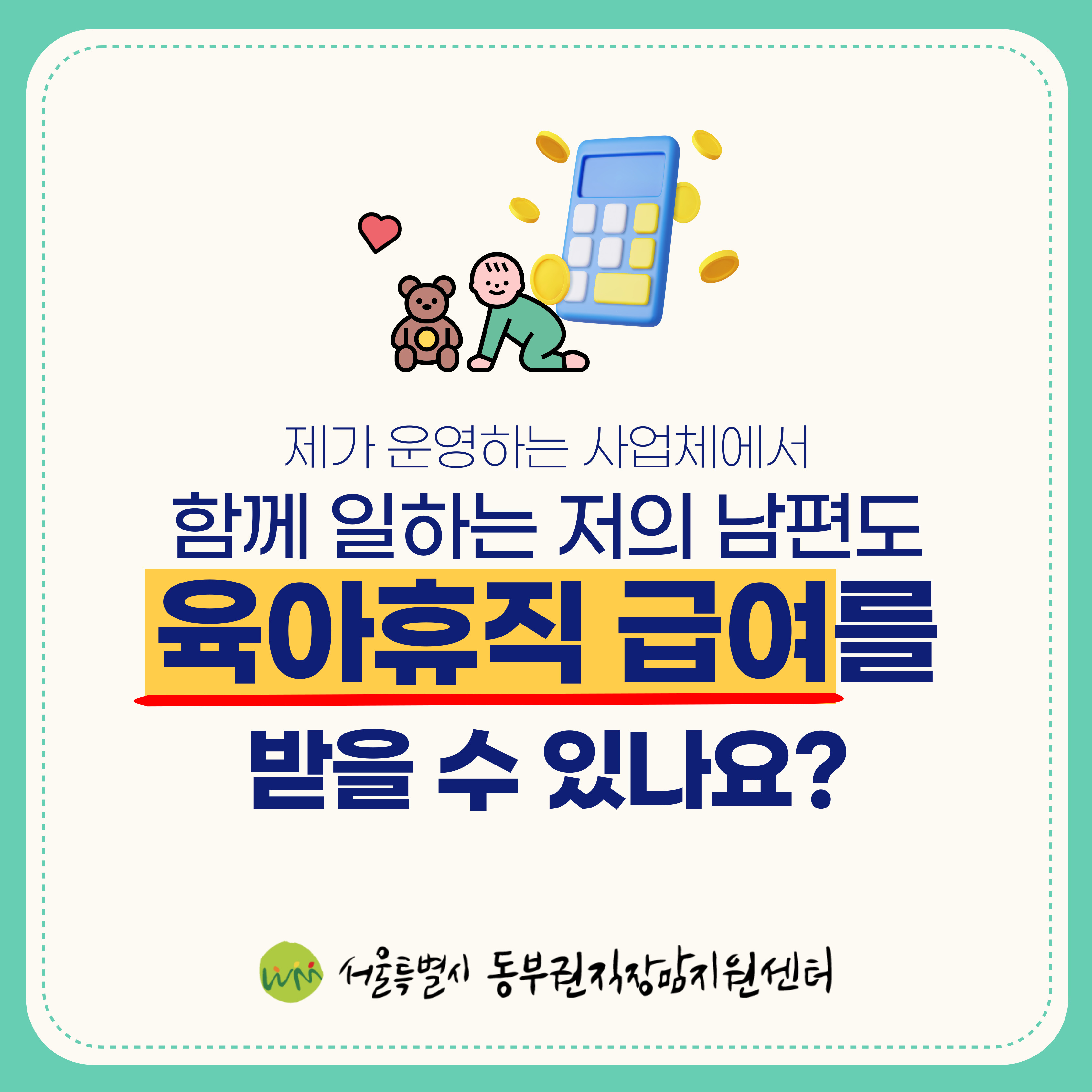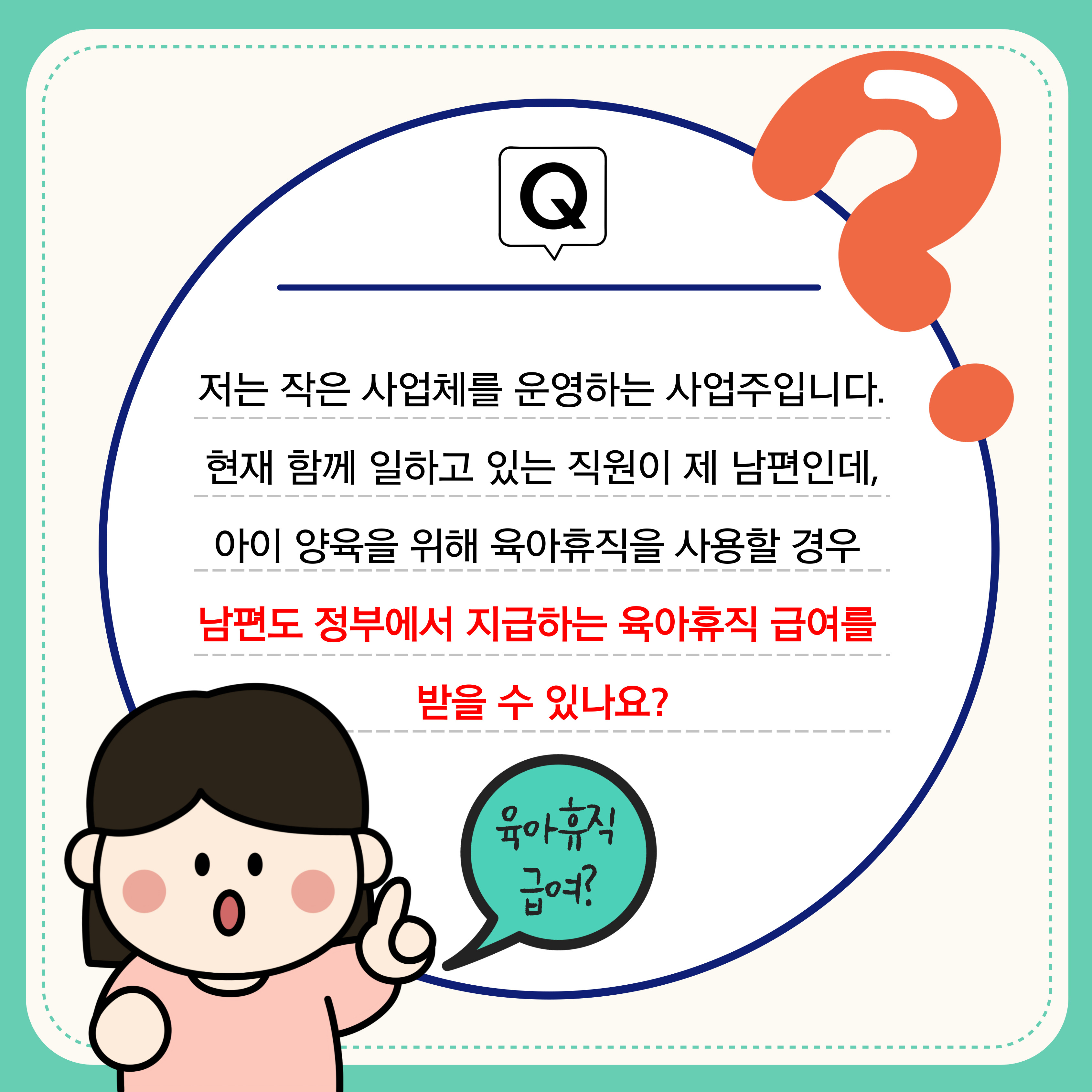 [카드뉴스] 제가 운영하는 사업체에서 함께 일하는 저의 남편도 육아휴직 급여를 받을 수 있나요?