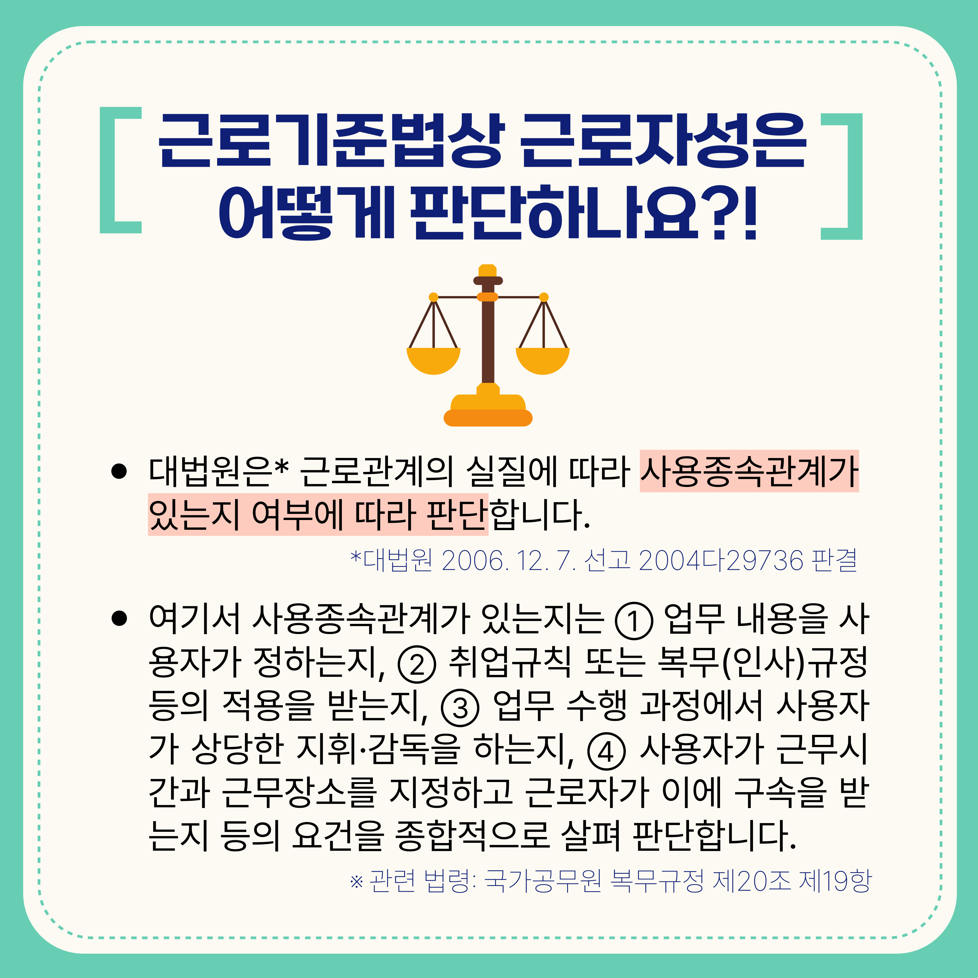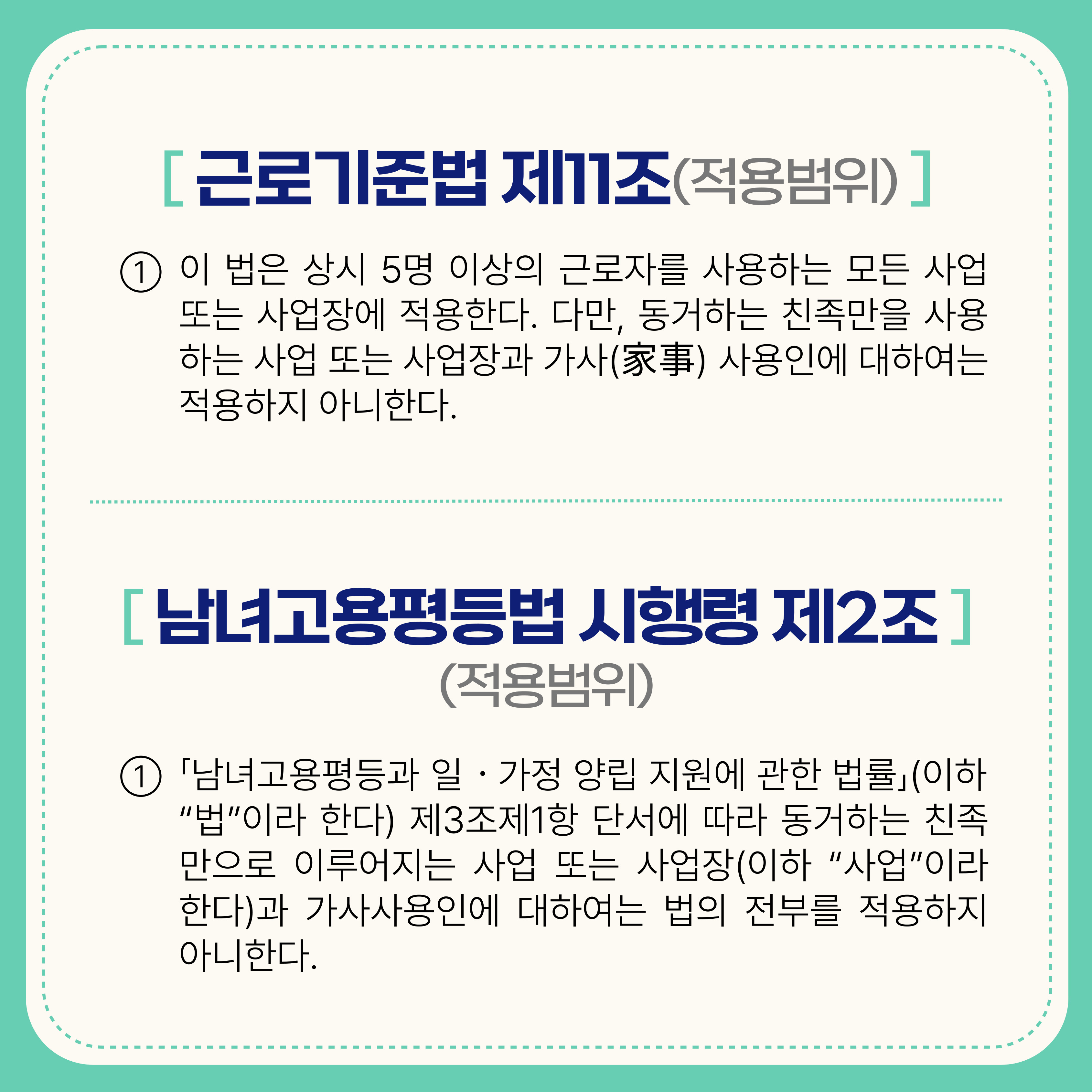 특히 모·부성 보호와 일·생활 균형, 근로계약, 임금, 근로시간과 휴식, 산업안전보건, 근로관계 종료 등