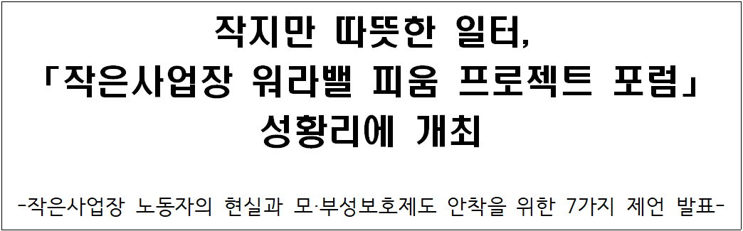 [여성신문] “육아휴직·연차도 눈치 보여”… 작은사업장도 ‘워라밸’ 누릴 권리를