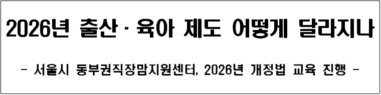 □ - 서울특별시 동부권직장맘지원센터(센터장 김지희, 이하 센터)가 사업주와의 밀착 상담을 통해 육아휴직을 허용한 사업주에게 지원하는 출산·육아기 고용안정장려금(육아휴직 지원금)과 관련한 행정상 착오를 발견, 어린이집 사업주가 받지 못했던 사업주 지원금을 받을 수 있게 되었다고 6일 전했다.