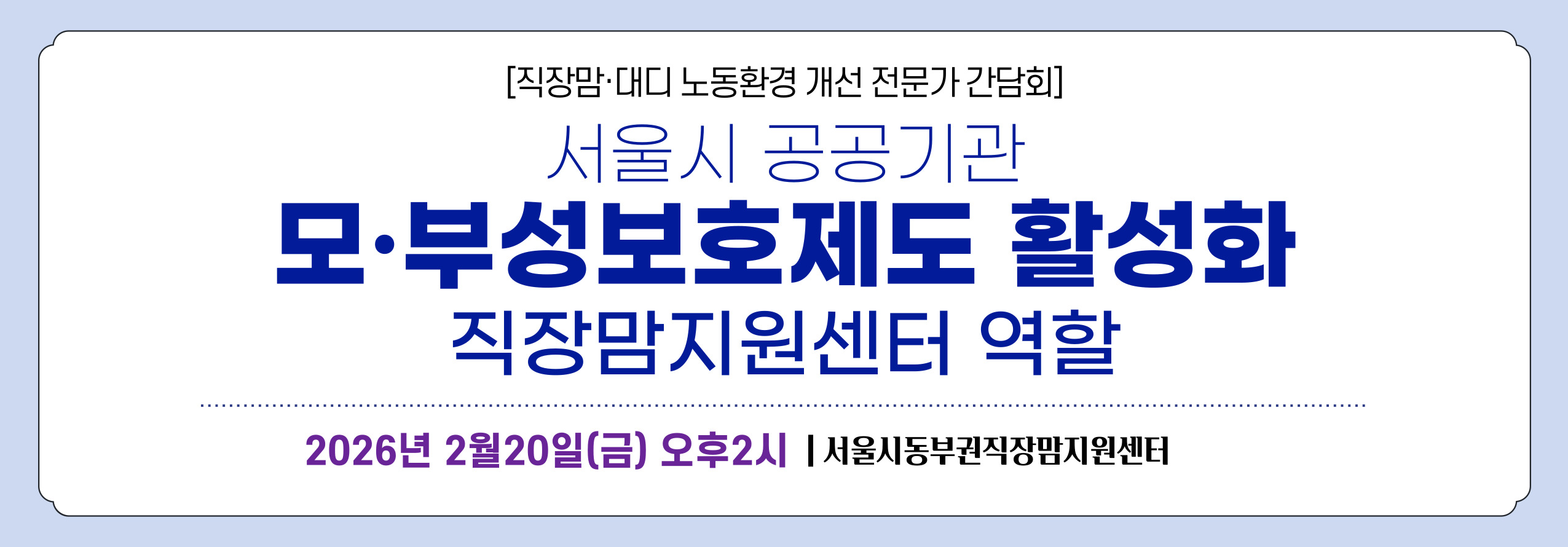 - [직장맘·대디 노동환경 개선 전문가 간담회] 서울시 공공기관 모·부성보호제도 활성화를 위한 직장맘지원센터 역할2026-02-13